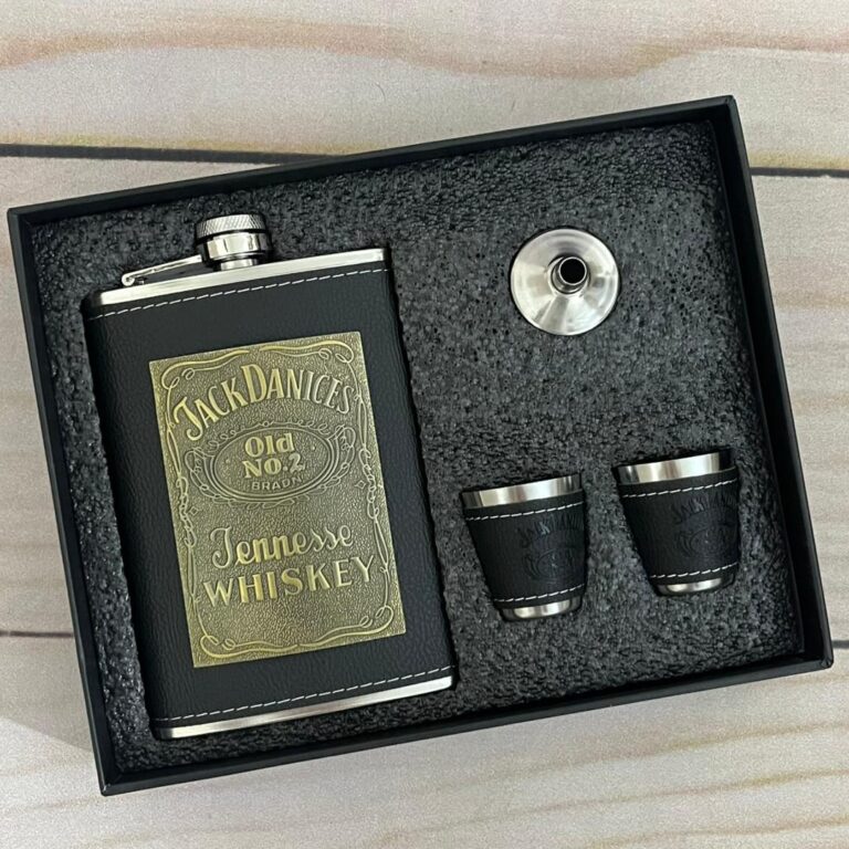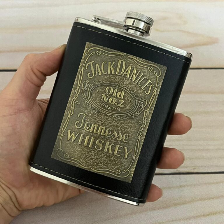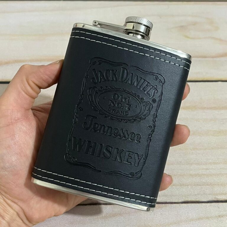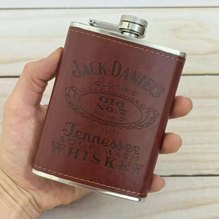 قمقمه جیبی روکش چرم پلاکدار جک دنیلز