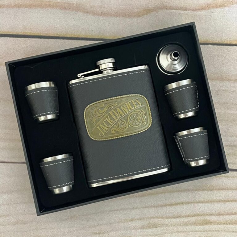 ست قمقمه جیبی ۴ شاته چرمی پلاکدار جک دنیلز طرح جدید