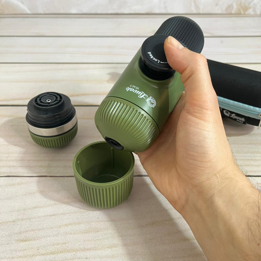 بدون نیاز به برق یا باتری – تنها با فشار دست قهوه تهیه می‌کنید.